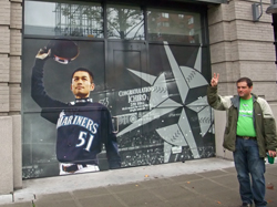 ICHIROがNew York Yankeesに移籍したばかりなので、こんなディスプレイも残っています(おどけて写真に収まるオジサンにもご注目!)。