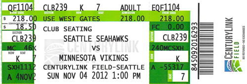 2012.11.4、NFL:Seattle Seahawks vs. Minnesota Vikingsを観戦しました(13:05 Kickoff)。
