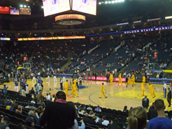 LOWER LEVELの中段の比較的コートに近い席でした、いつものように周囲に馴染むようにユニフォームも購入しました($105+Tax $10.24)。繰り返しますが観戦にあたっての礼儀と思います。地元で大人気(特に子どもに人気があるようです)のNo.30 Stephen Curryのものですが、彼はなかなか頑張って大いに勝利に貢献してくれました(それほど背の高い選手ではありませんが3点シュートを連発!)。