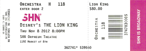 姪が劇団四季のライオンキングが好きなので(何度も札幌に行ったらしい)、「機会があったらUSA版のCDを買ってきてやろう」と言っていたところ、何という運なのか、San Franciscoで移動公演中でした。