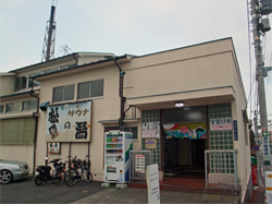 東京メトロ東西線浦安駅から宮前通りを300m程南進した境川(江戸川支流)沿いの元は漁村だった伝統ある旧市街に建つ簡素なコンクリート造りの銭湯です。後方に枠付き金属製細円筒型煙突が立っています。