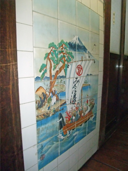 埼玉県30軒目になります。 JR南浦和駅(西口)の南方600m程の比較的古い市街地に建つ、外観はやや簡素な東京型の銭湯で、後方にコンクリート製円筒型煙突が聳え立ちます。すぐ隣のご自宅も瓦屋根の伝統的な造りになっています。 同駅の西側付近は浦和市時代の都市計画による土地区画整理事業(平成11年1月竣工)のため、すっかり様変わりしたようですが(味のある居酒屋街も見当たりません)、やや離れたこの辺りには比較的古い民家が散在し、すぐ近くには古い商店街(南浦和西口商店会)や文蔵郷前緑道もあります。 緑のひさしの下の玄関は周りの造りが昔のままで、屋号が墨字になっている簡素な手作り感満載の木製看板があり、中は白壁&木調格天井で木製の上り場になっています。木札鍵の松竹錠の下足ロッカーと松竹M型錠の傘立てが使われています。映画「テルマエ・ロマエ」のポスターが貼られています。 埼玉県さいたま市114 むさし湯 http://sentotanbonin.kai-seki.net/Entry/405/ ・・・にあったものと類似点が多く、日光御成街道(日光御成道…将軍が日光東照宮へ社参する際に利用した日光街道の脇街道)に近い物流の要地として栄華を誇ったこの辺りの銭湯の流行だったのかも知れません。 引き戸を開けて入ると木床&白壁&木調格天井の伝統的な脱衣所で、浴室との境は白タイル壁、戸や窓はほぼ昔の木製のままです。掲示版が旧浦和市のもので、4枚の様々なサイズの鏡は全て銭湯関係の職人や不動産やなどから贈られたものです(外側の1つに貼られている身長計はどう使うのやら!?)。屋号入りで新しめのTANAKAの針式体重計が置かれています。 優しそうな女将の座る番台は脇に雲形の飾りがあり、磨り減った天板が時代を感じさせます。料金入れ代わりのレジスターがなんとも懐かしいものです。 松竹のアルミ板鍵などの脱衣ロッカーが使われており、中央の島状部は番台からの対角線配置です。「全国浴場組合の景品バスポスター(丸山清人氏 画の富士山+田村隆一の詩+銭湯のマナーのイラスト)」も貼られています。 浴室は東京型で、天井は大橋ブルーに塗られています。最少限の窓や戸がアルミサッシになっているのみで、脱衣所と浴室の境の上部窓も木製のままです。釜場への戸も青塗りの木製です。 浴槽は通常の外側奥配置ですが、内側はシンプルな浅浴槽、外側はバイブラ付きの同じく浅浴槽で中でつながっています。内側手前に立ちシャワーもあります。 カランは固定シャワー付きのグレーとピンクのハンドルタイプの押し手で、内側4つ、3つ&3つの島、外側奥4つ(ここはシャワーなし)の配置です。 島が奥目に配置され手前側は黄色のケロリンの湯桶と緑のM字椅子に似たグレーの小さなプラスチック椅子の置き場になっています。外側手前には踏み石ゾーンがあります。 ペンキ絵は中島盛夫氏作で(平成23年9月12日 画)、富士山が浴室中央に聳え(下に昔のパイプの穴が・・・)、男湯側は滝のある山麓の風景になっています(女湯側は雲が見えるのみです>ご存じの方はご連絡を・・・)。外側壁下部に広告スペースが残されています。 浴室中隔壁には「湖畔に教会が建ちヨットの浮かぶ湖から望む遠くの山々」のスイス風のモザイクタイル絵もあります。 「お父さん、銭湯っていいね。お風呂もとっても大きいし・・・。また来ようよ。」「実はお父さんも初めてなんだけど、なかなか気持ちがいいもんだね。」という年中さんぐらいの男の子と若いお父さんの会話を聞くと、ちょっとぬるめだったのも「それもいいか」と思えます。 遠くのレジャー施設に行き、渋滞に巻き込まれて、子どもはぐずり、親は怒鳴り散らすより、近くの銭湯で本当の親子の会話をしてみてはいかがでしょうか。 木製の縁側を前に籐製のベンチで涼むと、小さな金魚の泳ぐ浅い池のある脱衣所手前の庭から、心地よい風と共に鳥のさえずりが届きます。 内外に傷みが目立ちますが、なかなか素晴らしい銭湯です。お越しをお待ちしています。修理をして末永く営業を続けていただきたいものです。 PR |