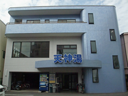 京急蒲田駅(東口)の南方300m程の呑川に近い商店の散在する住宅地に建つ完全ビル型銭湯です。