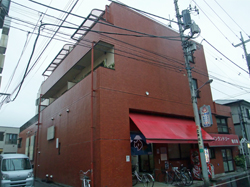 煉瓦調の外壁の比較的新しいビル型銭湯です(もちろんフロント形式)。2・3階はマンションで、後方に枠付き金属製細円筒形煙突があります。