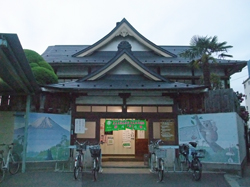 故早川利光氏によるペンキ絵で、男湯の「(おそらく)西伊豆・・・銘なし-比較的状態がよい)」(女湯は不明-富士はない)に加えて、玄関の左右にも「山梨(・・・からの富士-銘あり)」と「コアラの親子やカバなどの書かれたポップな庭の絵(屋号入り)」があります。後者は男湯ではなかなかお目にかかれないタイプのものです。是非実際に足を運んでご覧ください。