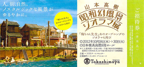 ・・・でご招待券(非売品)をいただいたので、2012.10.27、「山本高樹(たかき) 昭和幻風景 ジオラマ展(2012.10.18(木)~30(火)/日本橋高島屋8階ホール)」に行って来ました。