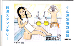 北29 稲荷湯 ~映画「テルマエ・ロマエ」ロケ地~ http://sentotanbonin.kai-seki.net/Entry/373/ ・・・を訪れたところポスターを発見し、 小山薫堂 東京会議 銭湯スタンプラリー(BSフジ) http://www.bsfuji.tv/tokyokaigi/stamp.html ・・・のスタンプカードを入手しました。 辛酸なめ子さんの画が表紙の手作り感満載の素朴なものです。 <銭湯アライアンス> ①北29 稲荷湯(滝野川6-27-14) http://sentotanbonin.kai-seki.net/Entry/373/ ②墨田34 御谷湯(石原3-30-8) -訪問済ですが当ブログ未紹介- ③江東19 白山湯(枝川1-6-15) -未訪問- ④文京4 月の湯(目白台3-15-7) -訪問済ですが当ブログ未紹介- ⑤品川9 富士見湯(東中延1-3-8) -未訪問- ⑥板橋37 第一金乗湯(若木1-19-6) -未訪問- ⑦練馬15 川場湯(桜台3-15-14) -未訪問- ⑧中野20 アクア東中野(東中野4-9-22) -未訪問- ・・・の都内8軒の銭湯を回ってスタンプを集めて応募すると(スタンプカードはアライアンス加盟の各銭湯にあります)、黒川賞(シルバー)の番組特製ピンバッジが進呈されます。さらに抽選で10名様に番組特製お風呂セットを贈呈(完成次第お届け)とのことです。 みなさん奮ってご参加ください(だからぁ、ここで宣伝すると競争率が高くなって自分に不利なんだって・・・まぁいいか!)。 PR |