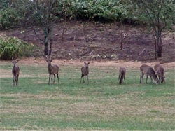 エゾシカ(蝦夷鹿/学名:Cervus nippon yesoensis)も家族または群れ(ときに100頭以上の大群!)でその辺を回遊しておられます(写真は昨年のGWのものです)。