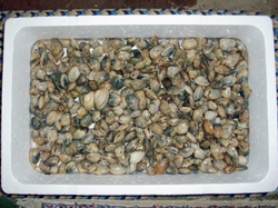 地元民の昔からの季節の風物詩ですので(漁業権云々の適用外です/もちろん地元民以外が大量に捕獲して売り捌くなどすると即御用になります)、近所の海岸であさり(浅蜊・蛤仔・鯏/学名:Ruditapes philippinarum)を採ってきました(2人で2時間の成果です・・・小さいものは放流します)。
