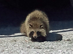 会社にエゾタヌキ(蝦夷狸/学名:Nyctereutes procyonoides albus)が遊びに来たと写真が送られてきました。