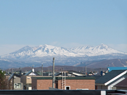 自宅(実質3階建て)の屋上から撮影した「残雪の大雪山」です。澄み切った春の日のためなかなか鮮やかです。