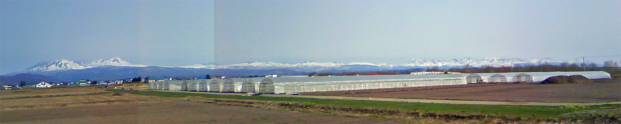 意外?にもご好評のようなので、大雪山系全景を郊外の畑で撮影してパノラマ写真化してみました。