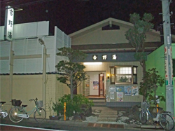 HPには全景写真を掲載しましたので、こちらは玄関正面のアップをどうぞ! 二重千鳥破風の外観が美しい東京形式の銭湯です(もちろん番台形式)。 浴槽はかなりシンプルながら(タイルは新しめですがバブルがあるのみの2槽式です)、浴室は改装され、ペンキ絵がない(全面白タイル)のが惜しまれますが、脱衣所はほぼ昔のままです。 戸や窓や床は基本的に古い木製で(浴室から釜場への戸も木製です)、浴室近くの床には古いタイルがあり、珍しい船底天井です。 寿と福助があしらわれた開店祝いの鏡(奥への戸の上にあります)、鶴亀を始めとした大入りの額5枚(往時の賑わいが忍ばれます)、木製のベンチ、銭湯名入り体重計・・・などレトロアイテムもいっぱい! 昨日はそうでもありませんでしたが、基本的に常連の好みか湯がかなり熱く、節約のため?中央側と島カランの内側のみ使われています。ご注意下さい。 追記1 脱衣ロッカーの鍵の番号がバラバラです。もしかして盗難・・・も原因なのでしょう。決して記念にお持ち帰りになりませぬよう・・・。 追記2 こんなブログを見つけてくれた方へのプレゼント・・・このCMの撮影で使われた銭湯です。 http://response.jp/article/img/2005/12/19/77503/75050.html |