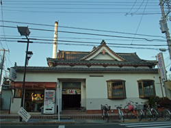 実際には都営新宿線篠崎駅が最寄り駅になります(ちょっと歩きます)。 銭湯お遍路185軒目です。 旧江戸川の土手に近く、隣は東京都立篠崎高等学校です。 「江戸川45 竹の湯(篠崎町4-21-15)」とは目と鼻の先です。 http://sentotanbonin.kai-seki.net/Entry/91/ 千鳥破風を冠した東京型銭湯の正面フロント改造版です。道路から両側面が確認可能で、後方に温泉マークと屋号入りのコンクリート製円筒形煙突がそびえ立ちます。 折上げ格天井・白壁・木床の脱衣所には有線放送(演歌)が流れています。 新しい模様タイルやレリーフタイルなどで浴室は改装されています。 外側奥角方面に立派な岩のバックがありますので(滝状ですが流れていませんでした)、浴槽は、座風呂2基、岩入りの湯口のあるバイブラ&浅風呂、寝風呂2基(2種類)、電気風呂兼日替り薬湯(ワインでした)と順に前方に出て来る配置で、カラン2つを挟んで、外側に拡張した水風呂、そして脱衣所に入り込む形で遠赤外線サウナ(別料金)となっています。 内側手前には立ちシャワーが2基ありますが、手前側には「打たせ湯とサイドシャワー」の名残もあります(出ませんので・・・)。 湯気抜きの中央に灯りがぶら下がっているのが変わっています(点灯するのかは不明)。 黄色のケロリンの湯桶が使われています。 特筆すべきは故早川利光氏によるペンキ絵で、男女浴室の境に富士が据わり側面壁にまで描かれた一枚物です。男湯側には伊豆海岸、女湯側には西伊豆と書かれています。特に端側に傷みが目立ちますが、富士はまだまだ健在です。浴室中隔壁の上の高さに描かれておりますので、女湯側もかなり確認することができます。 さらに驚くことには、かなり荒れてしまってはおりますが、塀の内側にも「恐らく故早川利光氏による西伊豆」が描かれています。休憩室横から庭の向こうに見ることができます(男湯脱衣所外側のトイレ前の喫煙所からも・・・)。 江戸川土手のジョギングがてらの一風呂はいかがでしょう。 |